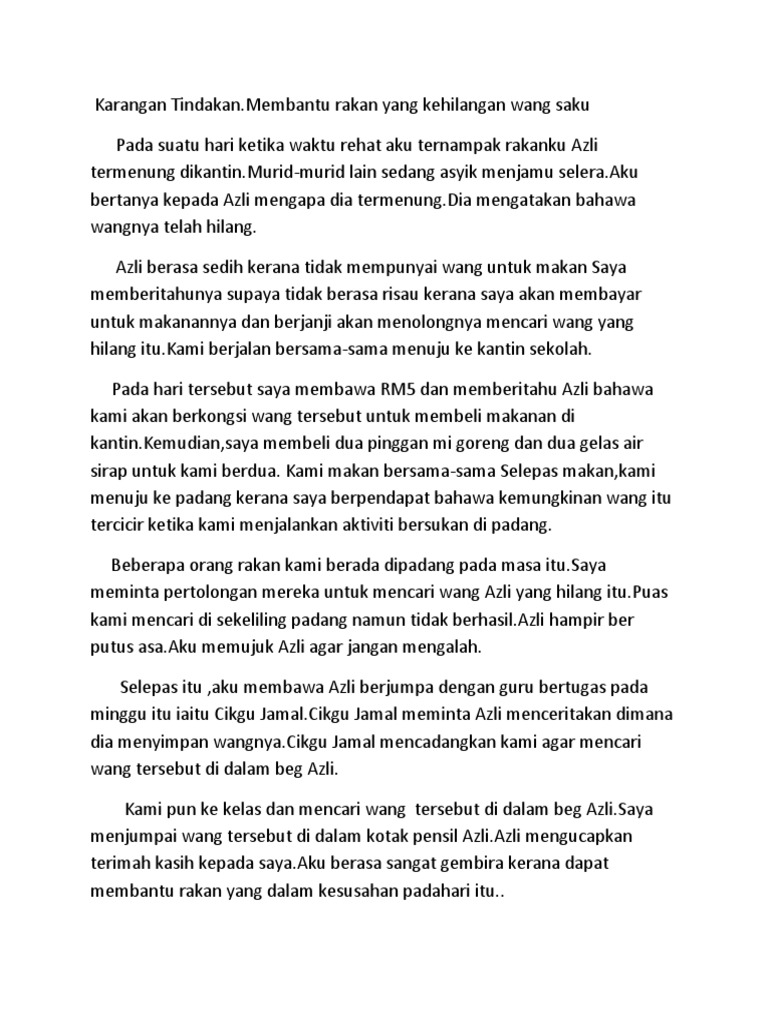Karangan Tindakan Membantu Rakan Yang Kehilangan Wang Saku Pdf